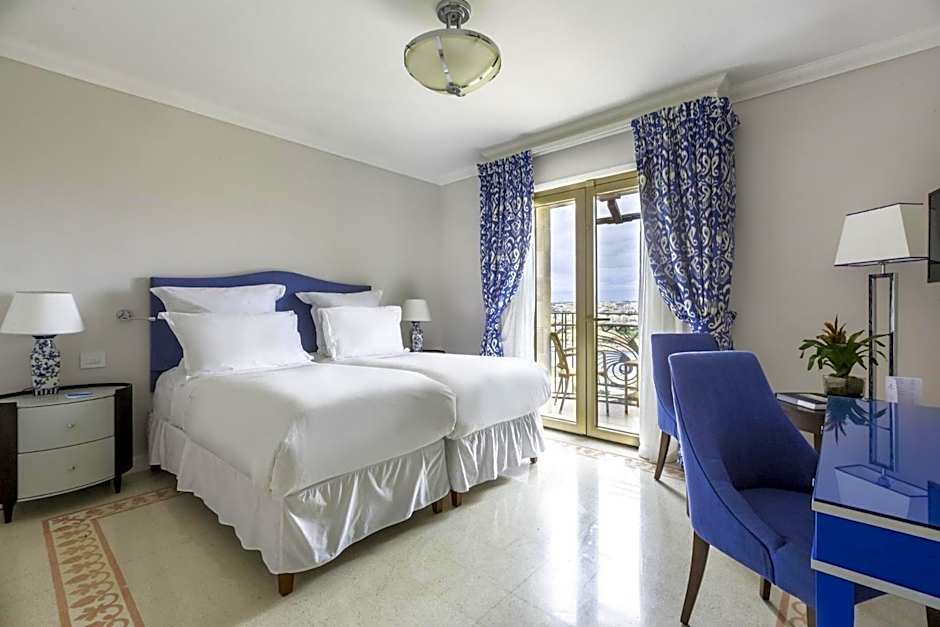 Luxurious suites with panoramic views overlooking Marsamxett or the Grand harbor with a separate sitting area, complimentary mini-bar of nonalcoholic beverages, sofa coffee table, walk-in shower and a separate bath, lighted makeup mirror, voice mail, direct dial phone number and 43 inch television.