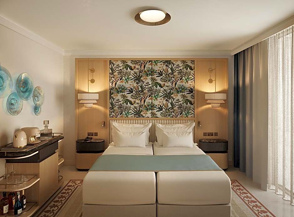 Suite with City View Featuring views of one of UNESCO’s World Heritage sites, this suite includes complimentary mini-bar of nonalcoholic beverages, complimentary espresso machine, mobile phone wireless charging station, two flat screen 43 inch televisions, Bluetooth speaker with mobile device integration, stand-alone bathtub and separate shower, light sensor in bathroom, double vanity, heated towel warmer, lighted shaving and make-up mirror, double closet, soundproof windows, writing desk and direct dial telephone. No room for cots.